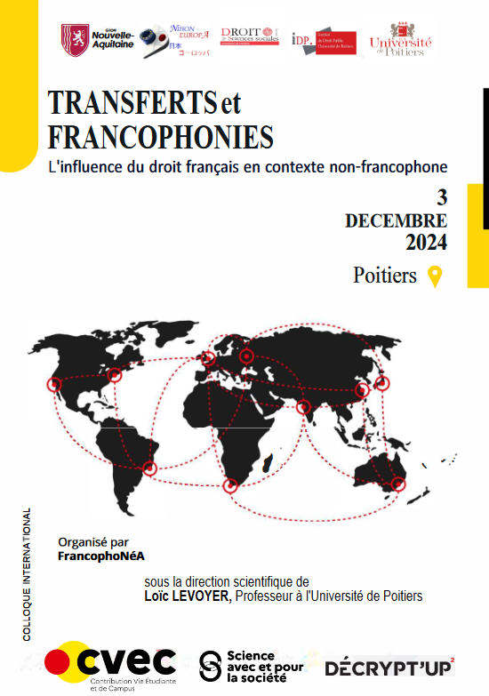 COLLOQUE - Transferts et francophonies, l’influence du droit français en contexte non-francophone le 3 décembre 2024