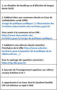 Cette bourse concerne uniquement les étudiants n’étant pas éligibles aux autres dispositifs existants.